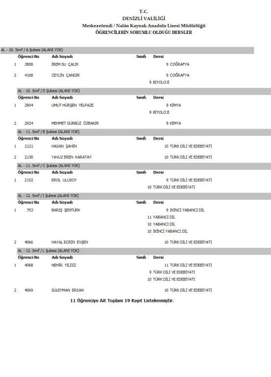2024-2025 Öğretim Yılı Yaz Dönemi Sorumluluk Sınavı Sorumlu Dersi Olan Öğrenci Listesidir